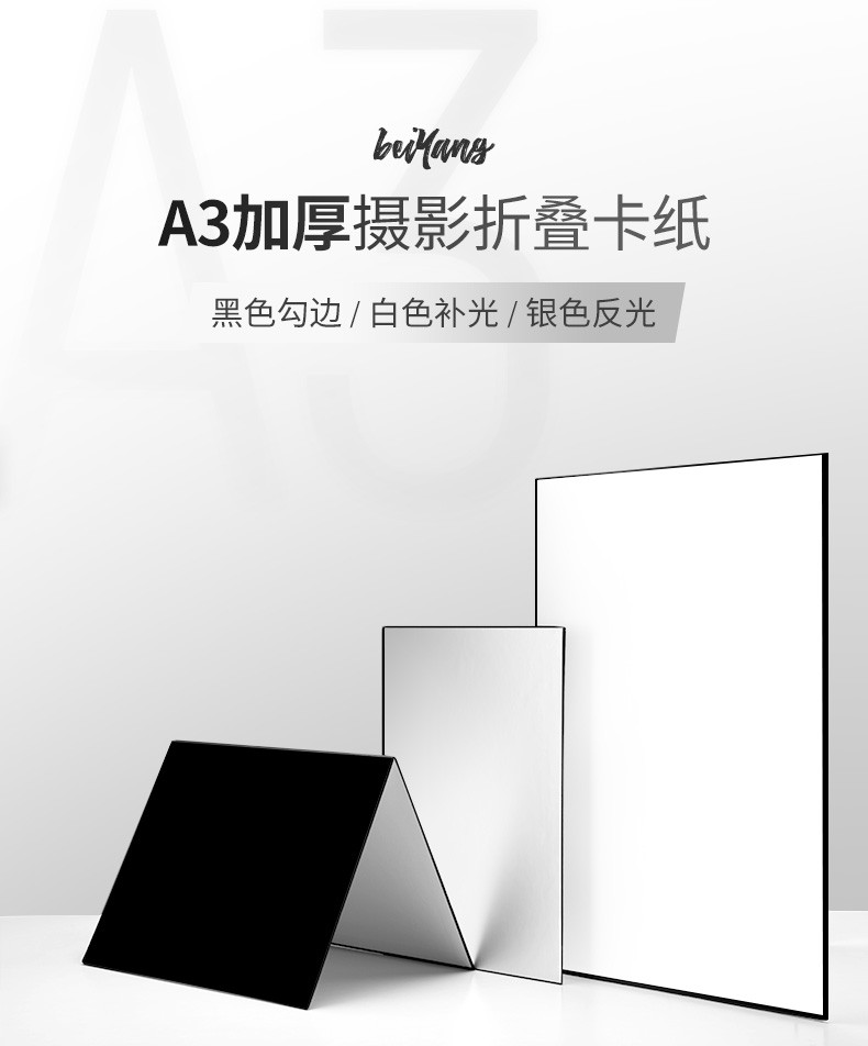 贝阳(beiyang)A3大号摄影背景卡纸可折叠补光板静物产品拍摄反光板硬板加厚黑白银哑光吸光勾边美食美妆拍照