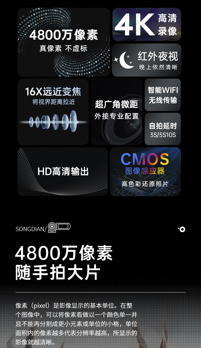 松典(SONGDIAN) dv数码摄像机便携式vlog拍录一体专业手持4K高清红外夜视 官方标配 128G 内存
